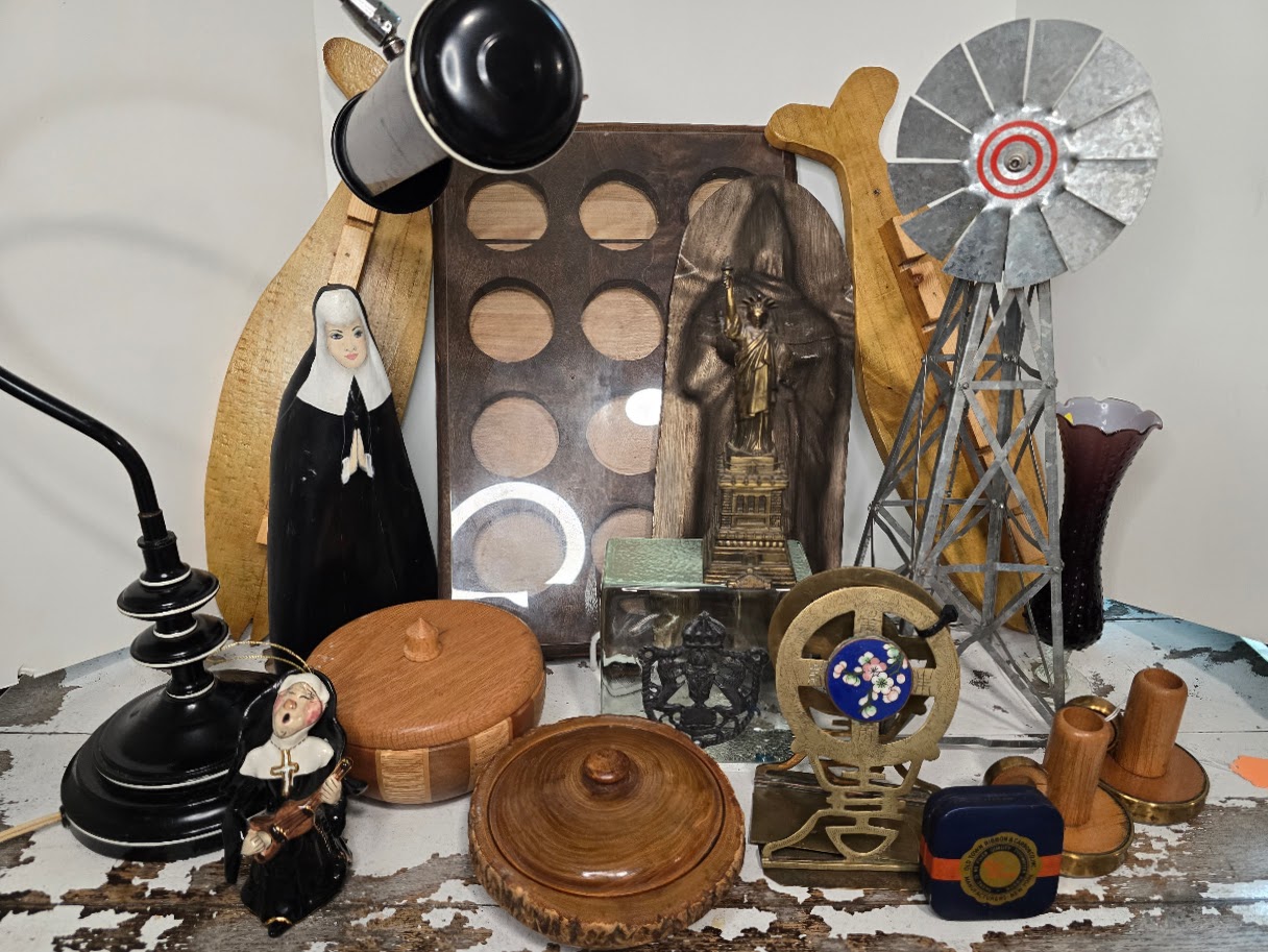 After selecting a few more items on the first floor, I descended into the basement, and it was there that I found my dream vendor. For me, a dream vendor is a seller who has interesting inventory AND has the philosophy that they would rather move a lot of stuff at low prices fast than hang on to an item for a long time to reach maximum profit. As a reseller, this type of vendor aligns perfectly with my goals of scooping up items that are particularly low-priced for antique malls. In this case, the dream vendor had an excellent eye for cool and unusual stuff! Here is a picture of his booth.