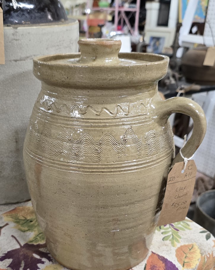 I believe this is a French stoneware crock from the late 1800s or early 1900s. It is very heavy and a gorgeous cream color with primitive markings. It cost $50, so I passed on it, but I did some research after leaving the store, and I believe the value of the crock could be over $200. If I hadn’t been heading home on a different route, I would have returned and purchased it. Alas, it was not meant to be! But who knows, maybe it is still there, and someone reading this article will be lucky enough to make the purchase.