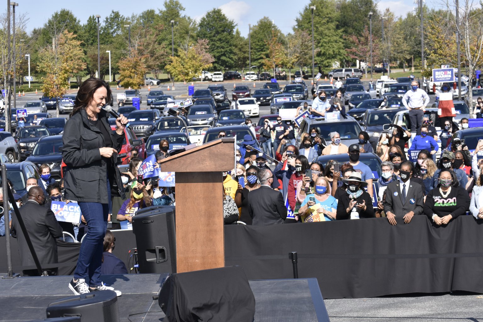 Democratic vice presidential candidate Kamala Harris flew into DeKalb County Sunday morning to make a last-minute push for voters to turn out for former Vice President Joe Biden.