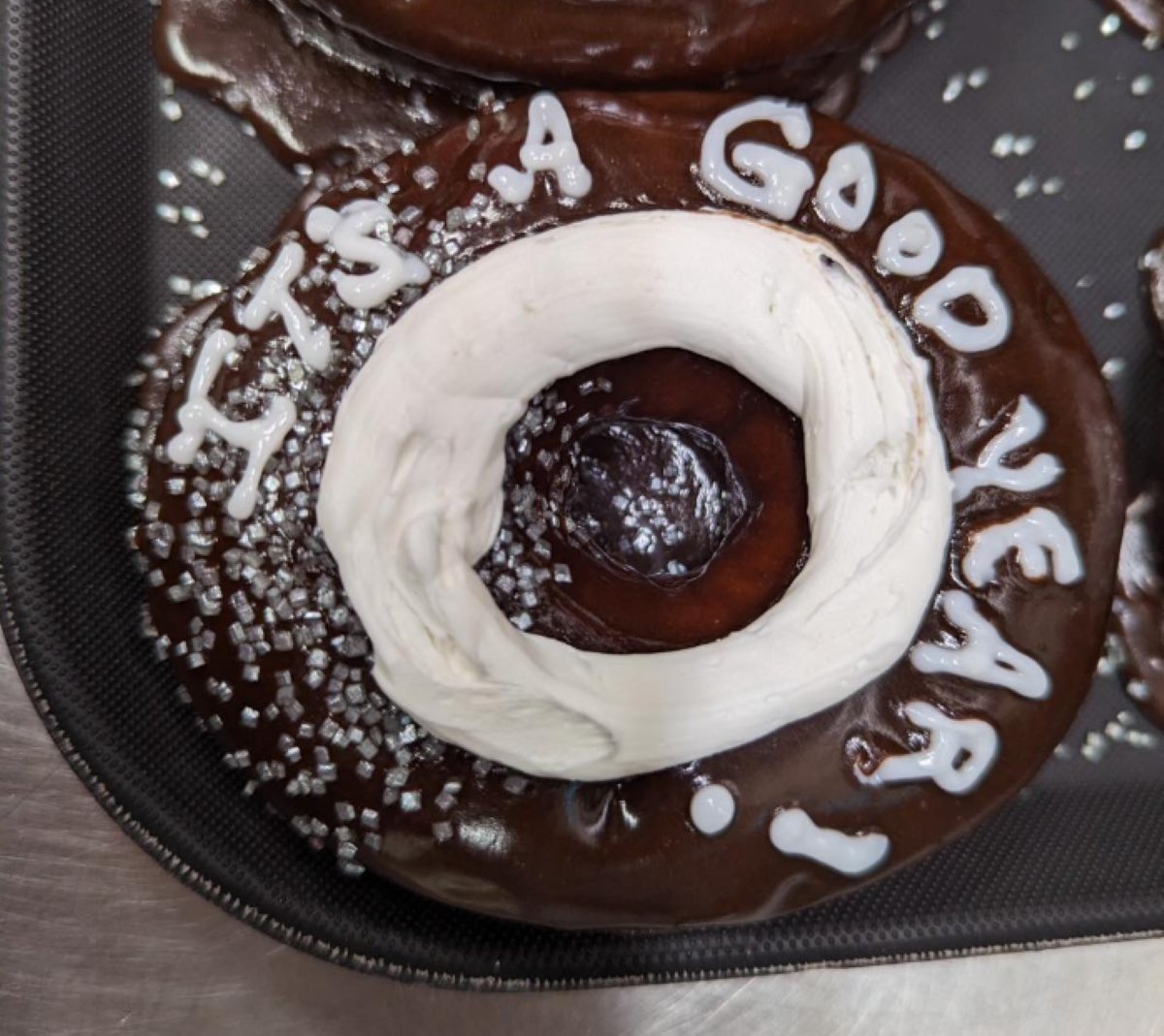 Cowboy Bob’s owners Bob and Paula Kubinchak say they’re very thankful no one was hurt in the incident. They even had a bit of fun with it, celebrating their reopening with commemorative “tire donuts,” which they served with or without “glass” (sugar crystals).