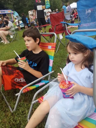 Heidi Dawn of Cornelia captured a photo of her kids “Enjoying Kona [Ice] listening to the awesome band.”
