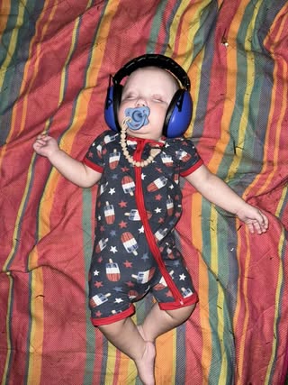 Not everyone who was there saw the fireworks. Susan Khadayat captured a photo of a baby wearing headphones snoozing away on a picnic blanket on the open lawn of Pitts Park.