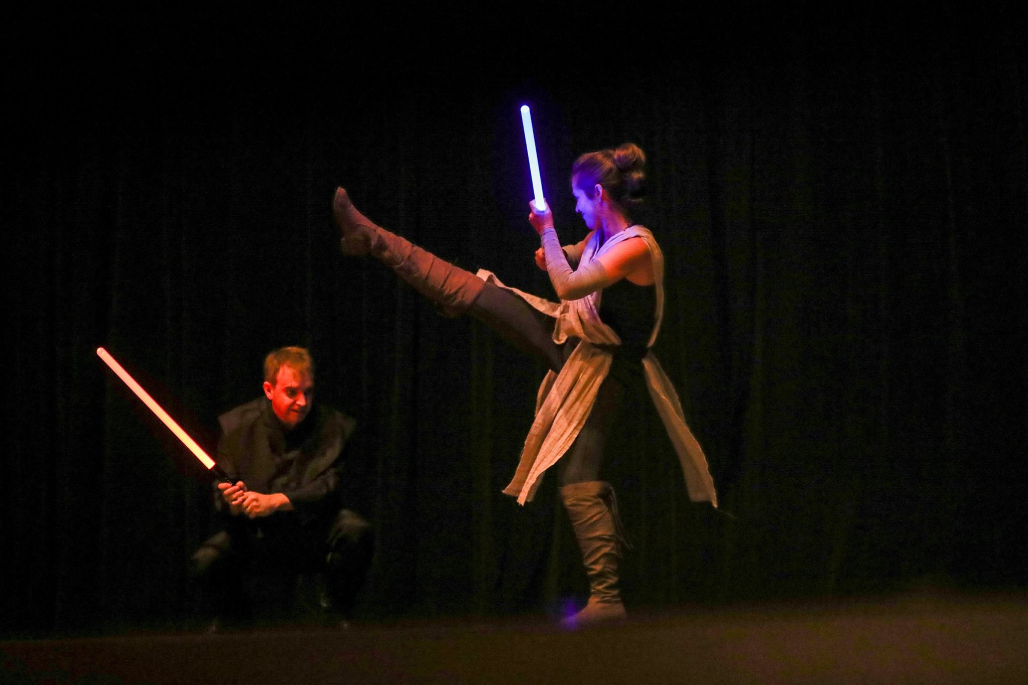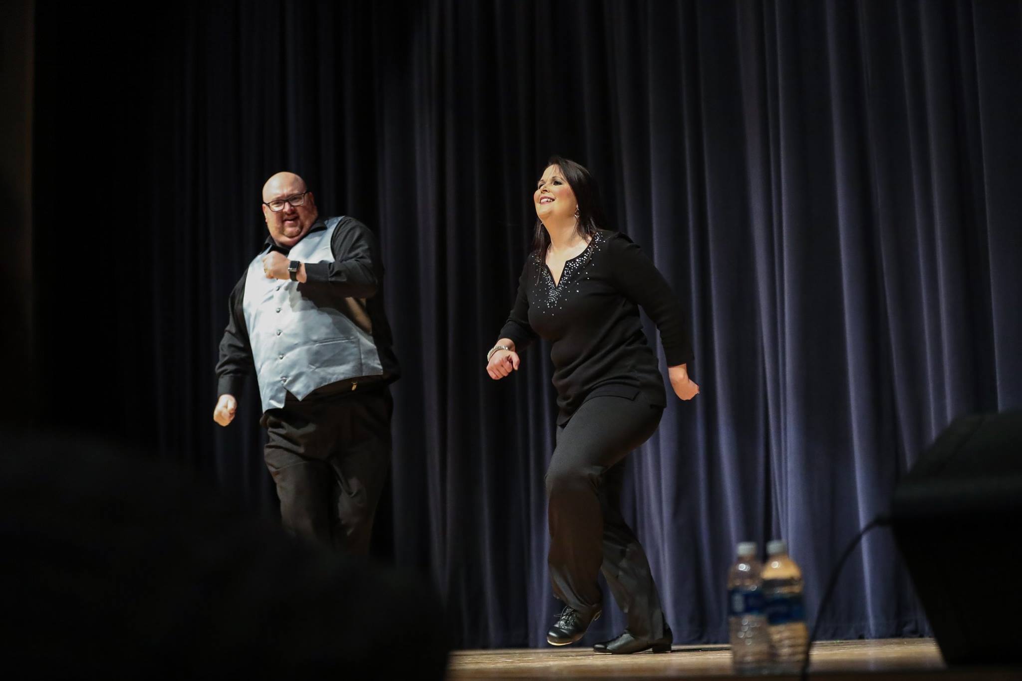 Judges awarded first place to Mike Franklin and Tracy Marsengill (left) for their Mary Poppins inspired dance. James Irvin and Allyson Carter took home the crystal ball for People’s Choice for their Star Wars themed performance. (photo/Daniel Purcell)