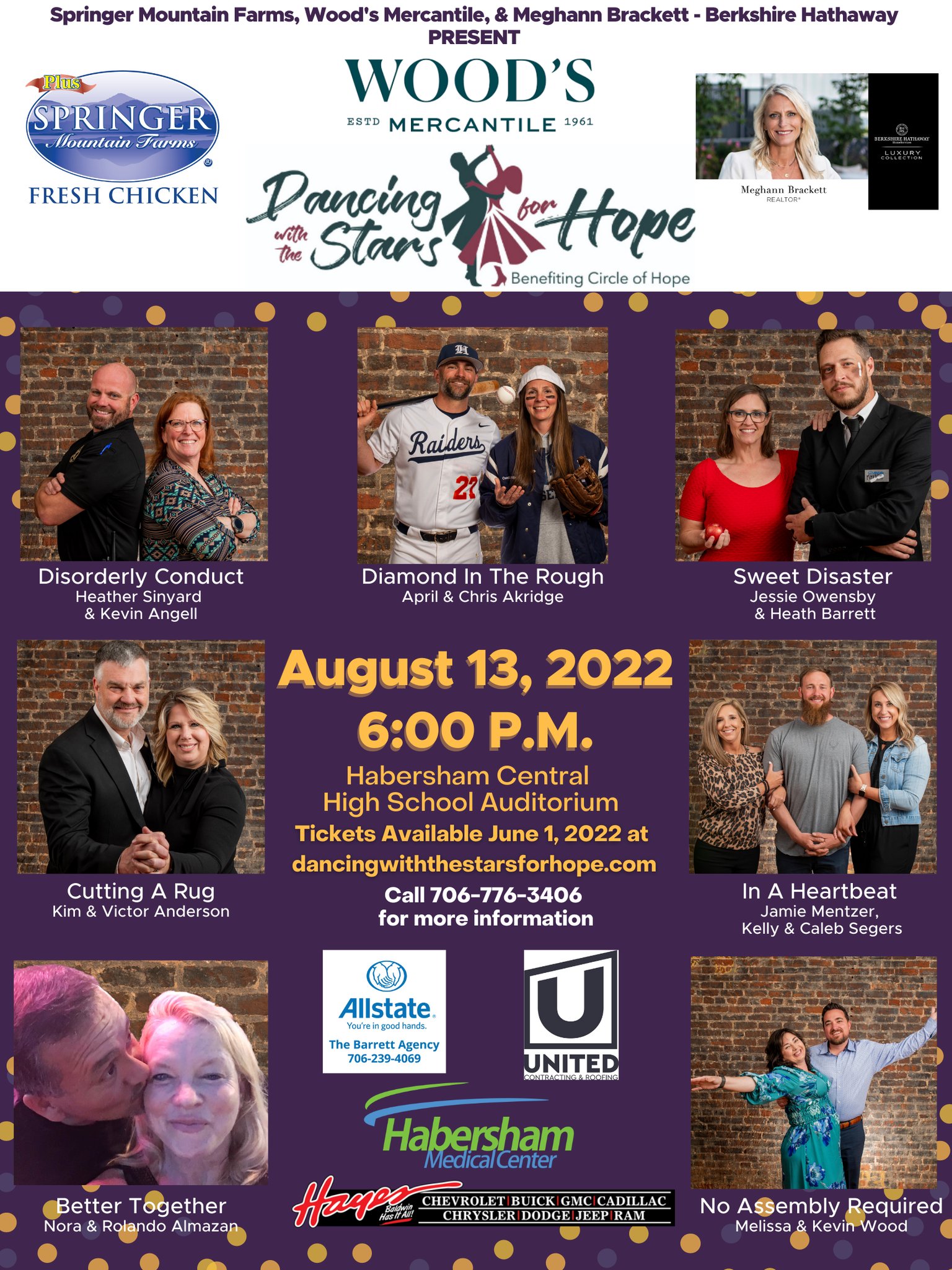 Circle of Hope is preparing to host its 7th annual Dancing with the Stars for Hope fundraiser. It will take place at 6 p.m. on Saturday, August 13 at the Habersham Central High School Auditorium in Mt. Airy.