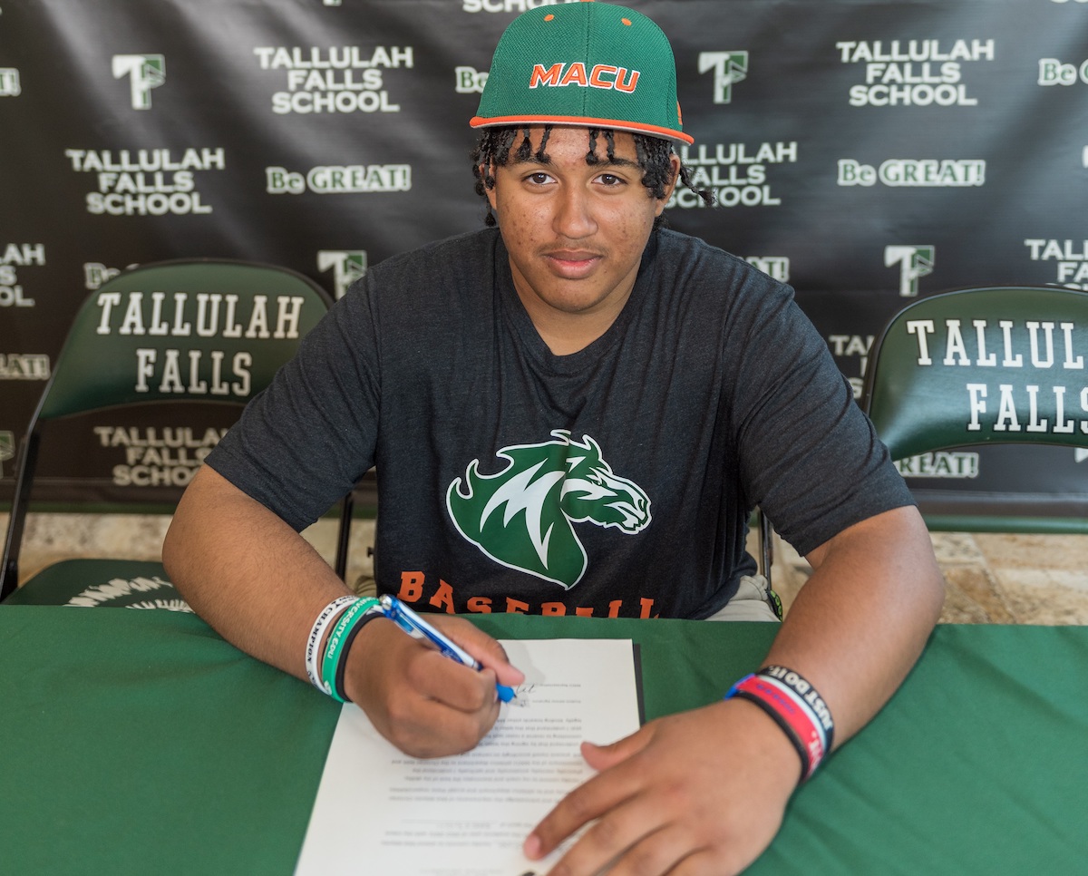 Tallulah Falls School senior David Medina made his commitment to Mid Atlantic Christian University official on Tuesday when he signed his letter of intent. Medina, of Oakwood, will continue his baseball and academic career for the Mustangs of Mid Atlantic Christian University, which is a member of the Eastern Metro Athletic Conference of the United States Collegiate Athletic Association, Division 1 in Elizabeth City, NC.
