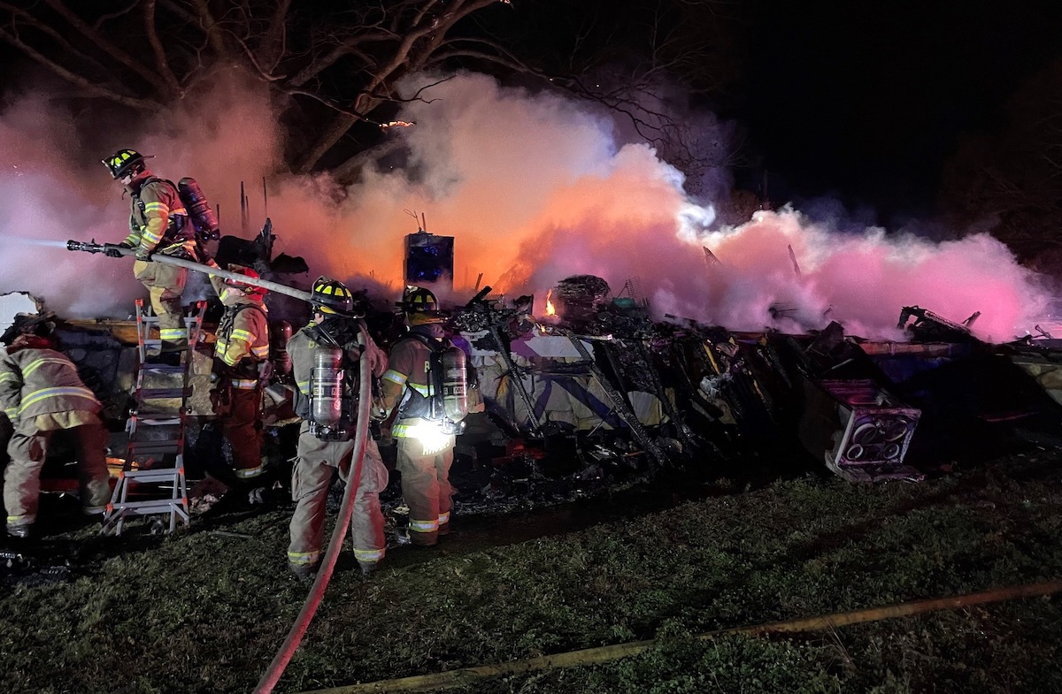 “As firefighters arrived quickly, multiple explosions were going off inside the home,” says Chief Alan Shuman. “The home was fully involved in fire and was collapsing as a result of the fire. Several vehicles were also involved.”