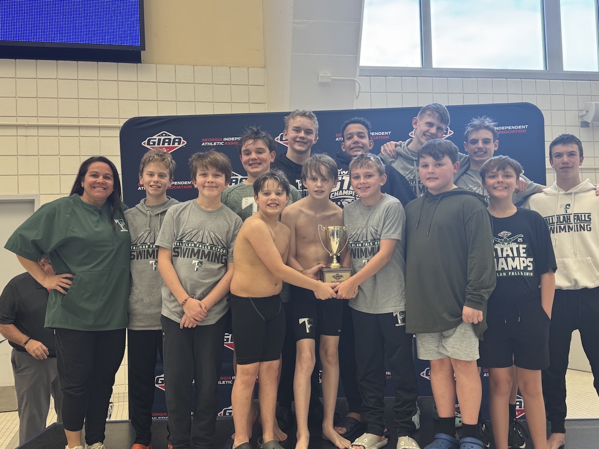 The MS boys also earned the status of back-to-back State Champions. The Indians posted 82 points, nearly doubling the 2nd-place group. The 200 Medley Relay team (Brody Dampier, Lincoln Penland, Logan Thompson, Rhett Addison) won gold, as did the 200 Free Relay (Brody Dampier, Matteus York, Lincoln Penland, Logan Thompson). Dampier won individually in the 50 Back.