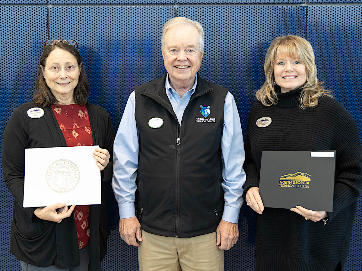 Sheila Kisner of Demorest, Ga.; Kristie Gibbs of Mineral Bluff, Ga.; and Ida Lynn Wallace of Morganton, Ga. were all recognized for 25 years of service with NGTC.