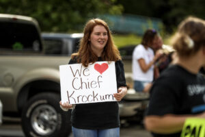 The posters supporting Robin Krockum weren’t the only signs in Demorest this day.