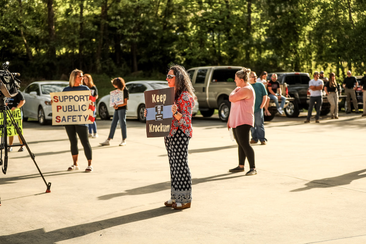 Several dozen people gathered in the parking lot outside the Demorest Municipal Building on Tuesday waiting to hear why the city’s police chief was fired.