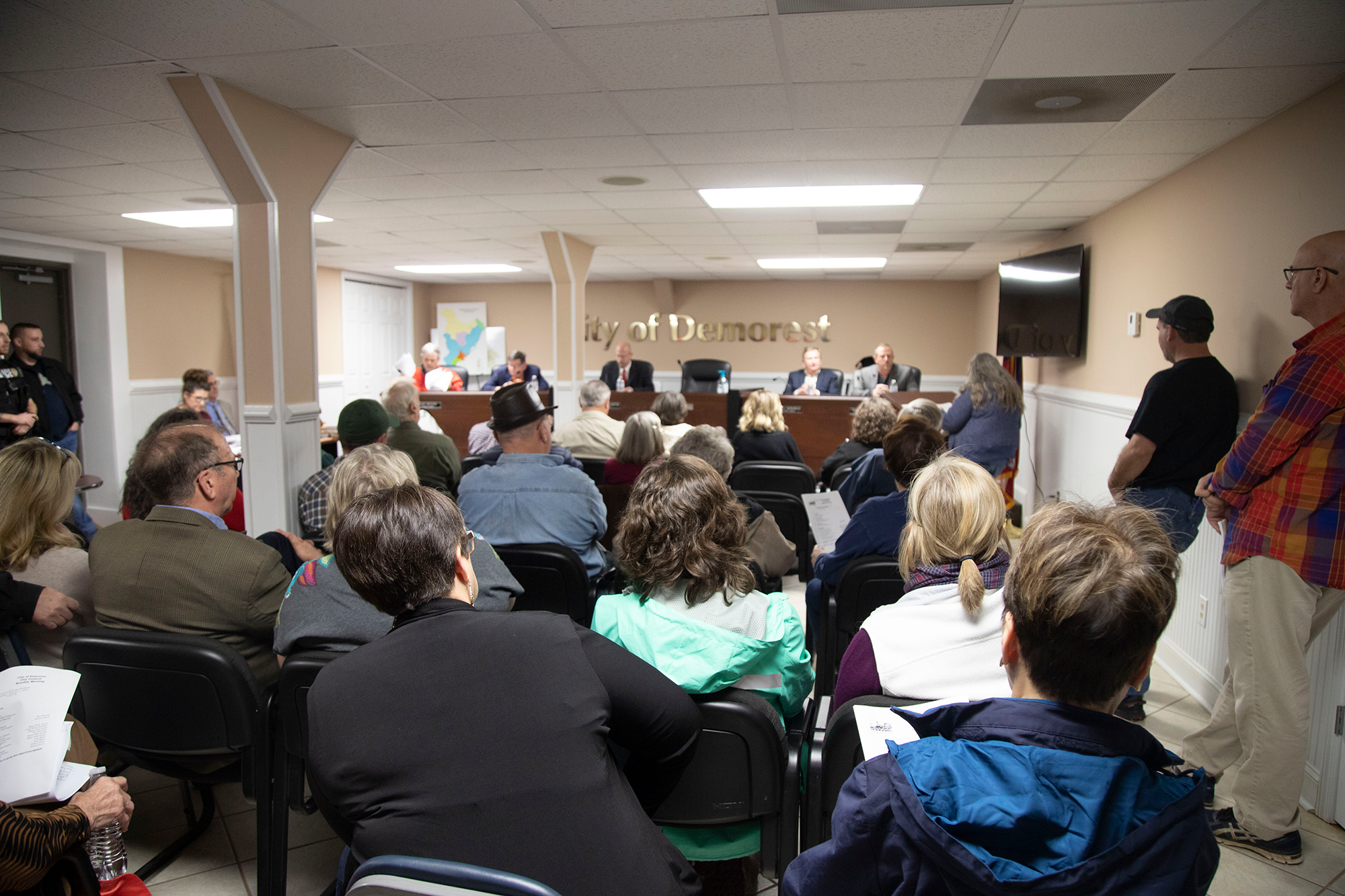 People stood and tensions flared during Tuesday’s packed Demorest City Council meeting. (Hadley Cottingham/Now Habersham)