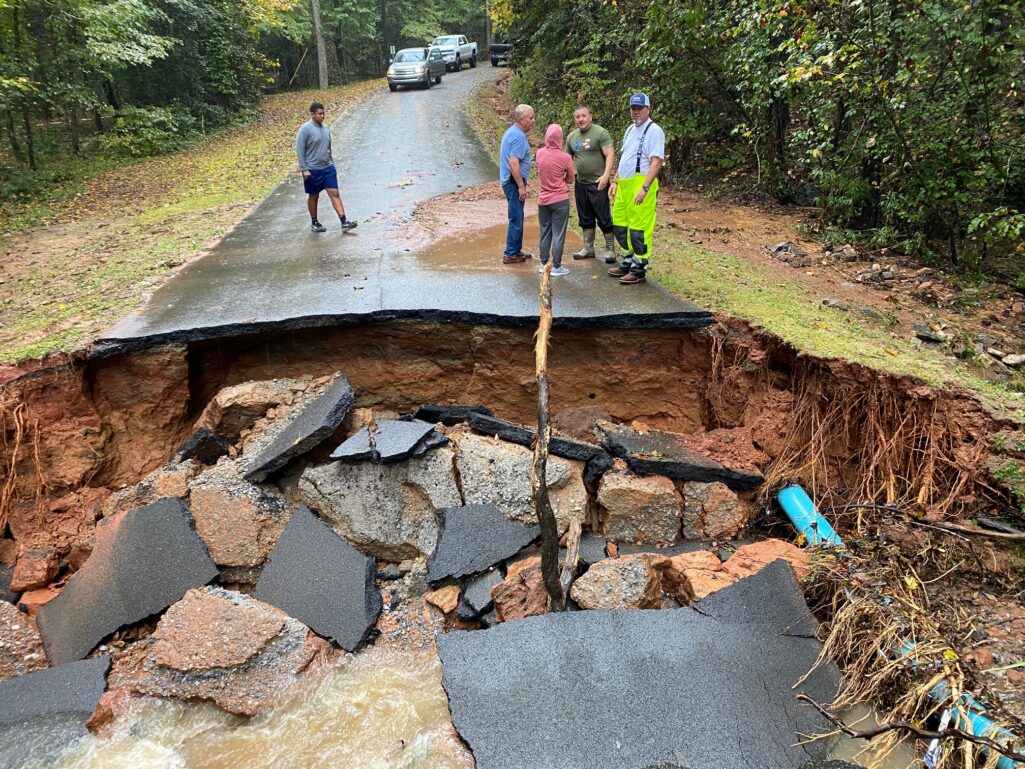Rushing water from creeks and streams washed away dirt from underneath several roads in the city, causing the roads to collapse.