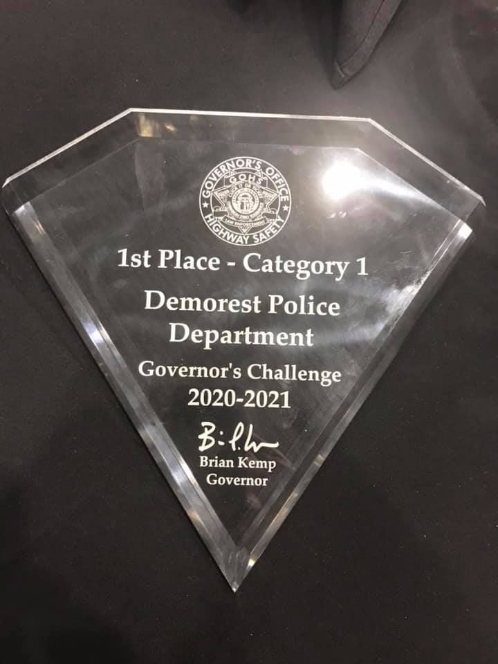 The City of Demorest Police Department took home first place in the Georgia Governor’s Challenge awards banquet in the 1-10 officers category Friday night. This is the banquet’s 22nd year, and Demorest’s fifth consecutive year receiving this award.