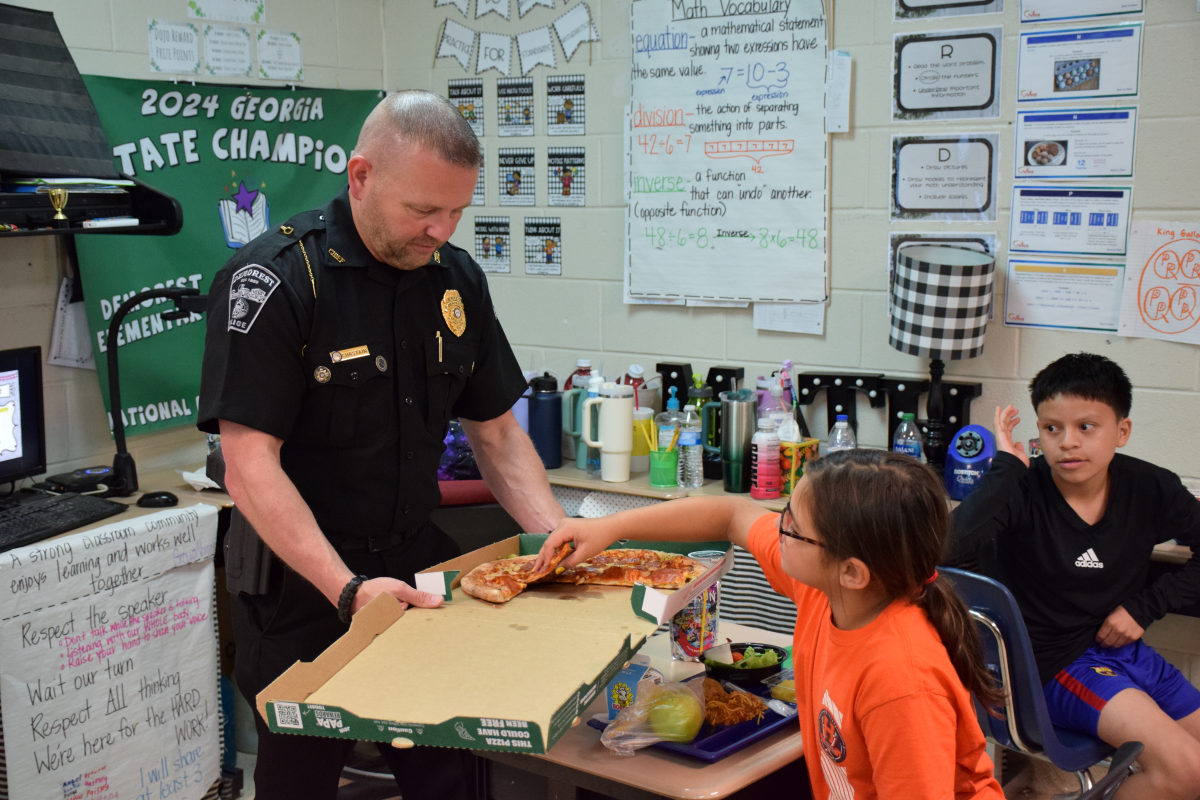 The Demorest Elementary School 4th graders who recently soared to the top of the charts in a global reading competition got a pleasant surprise Tuesday. The city of Demorest treated April LaHayne’s class to a surprise pizza party to celebrate their achievement.