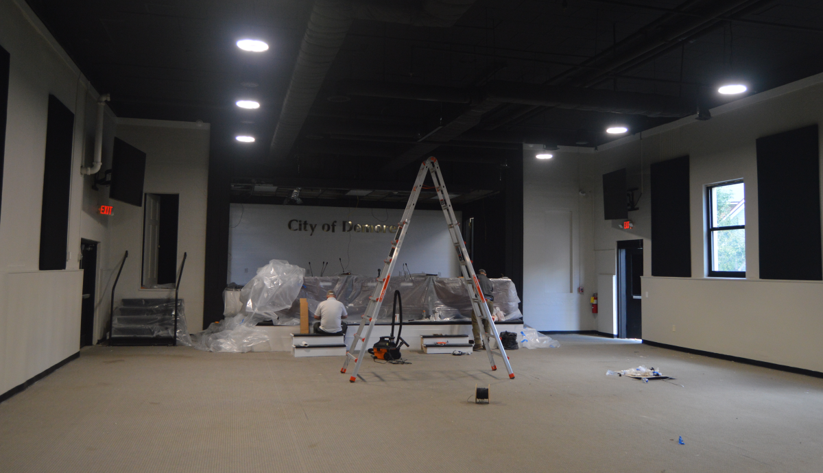 Over the past several weeks, contractors painted the auditorium and wired and connected the audio-visual equipment. They relocated the council bench from across town and installed it on the auditorium’s stage.