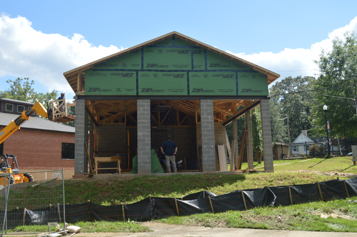As work nears completion on the conference center, crews are also making steady progress on the new pavilion and restrooms at Demorest Springs Park. The structure is located near the Demorest Police Station on Georgia Street.