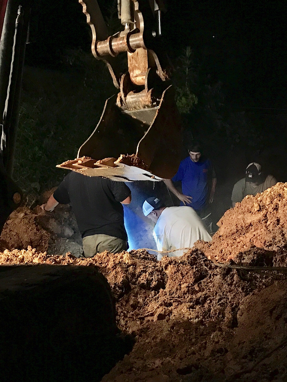 Repairs were complicated by a number of factors. “It’s a very difficult water line break. The difficulty is not just in repairing the line itself but what’s around the line,” Austin explained as crews worked into the early morning hours. “There’s lots of rock and telephone lines buried near it.”