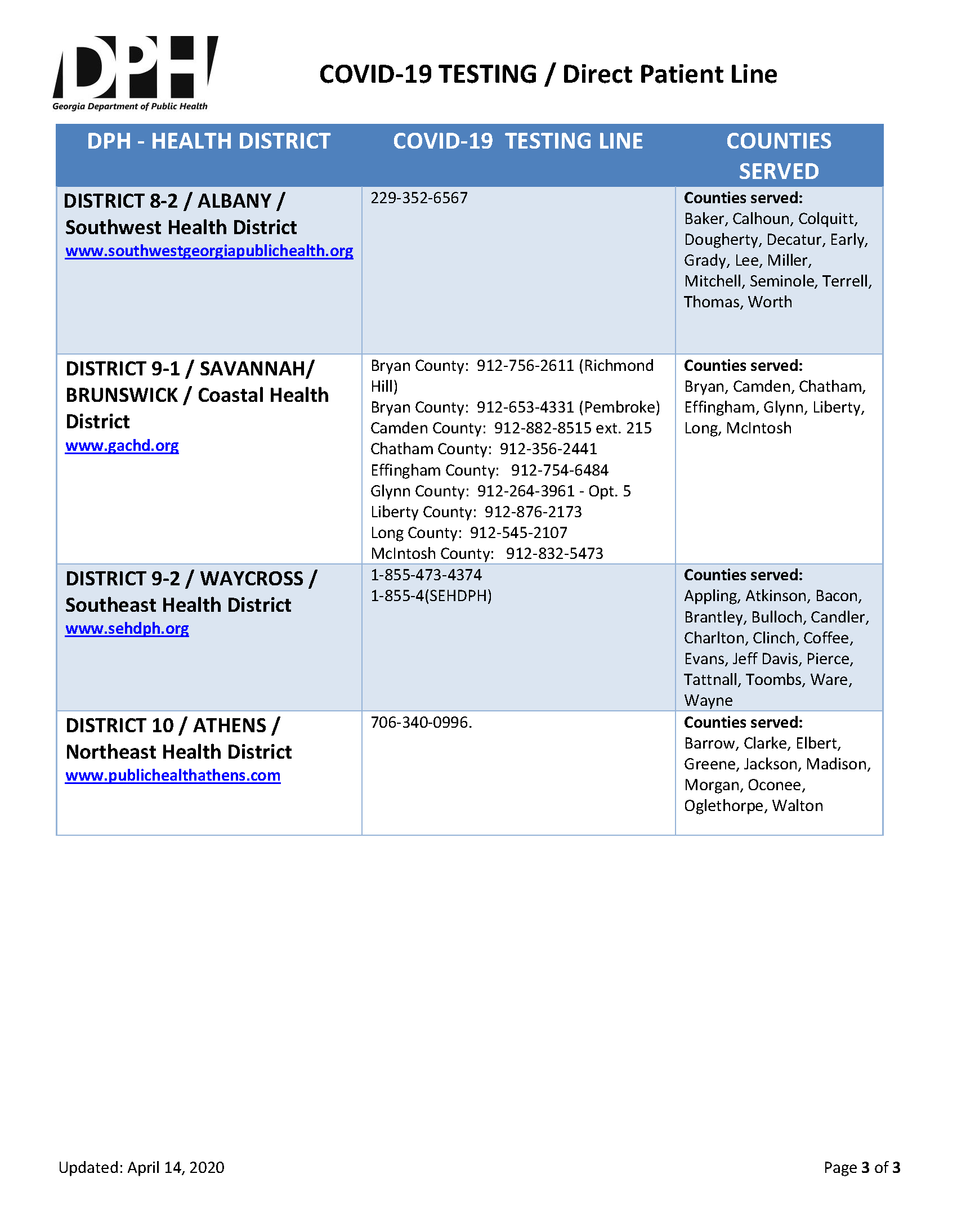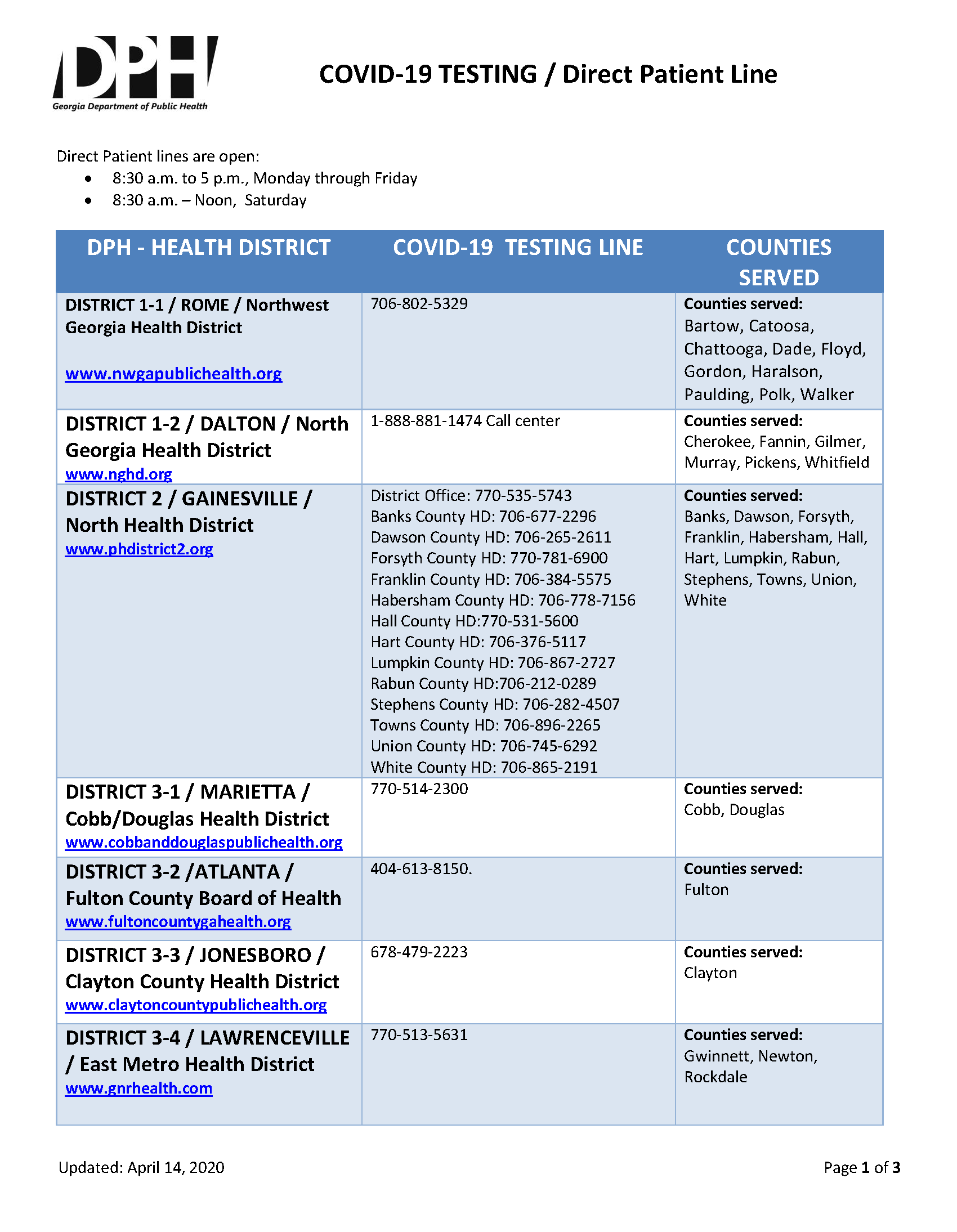 This article was updated on April 15, 2020, with the latest information from the Georgia Department of Public Health