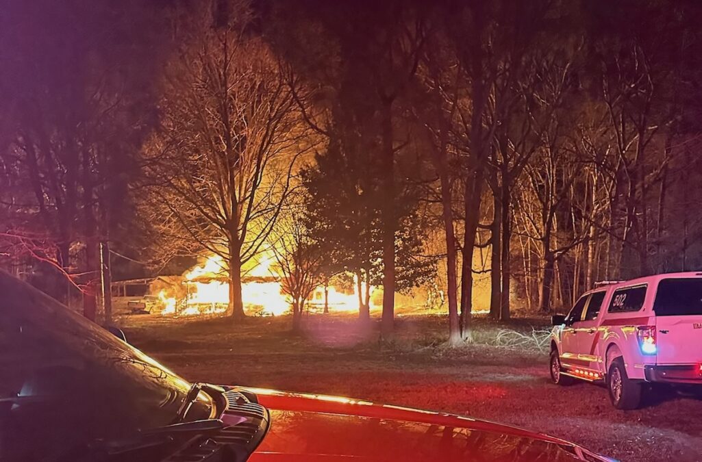 When firefighters arrived, they found three outbuildings, numerous old vehicles, and about two acres of grass and woods burning.