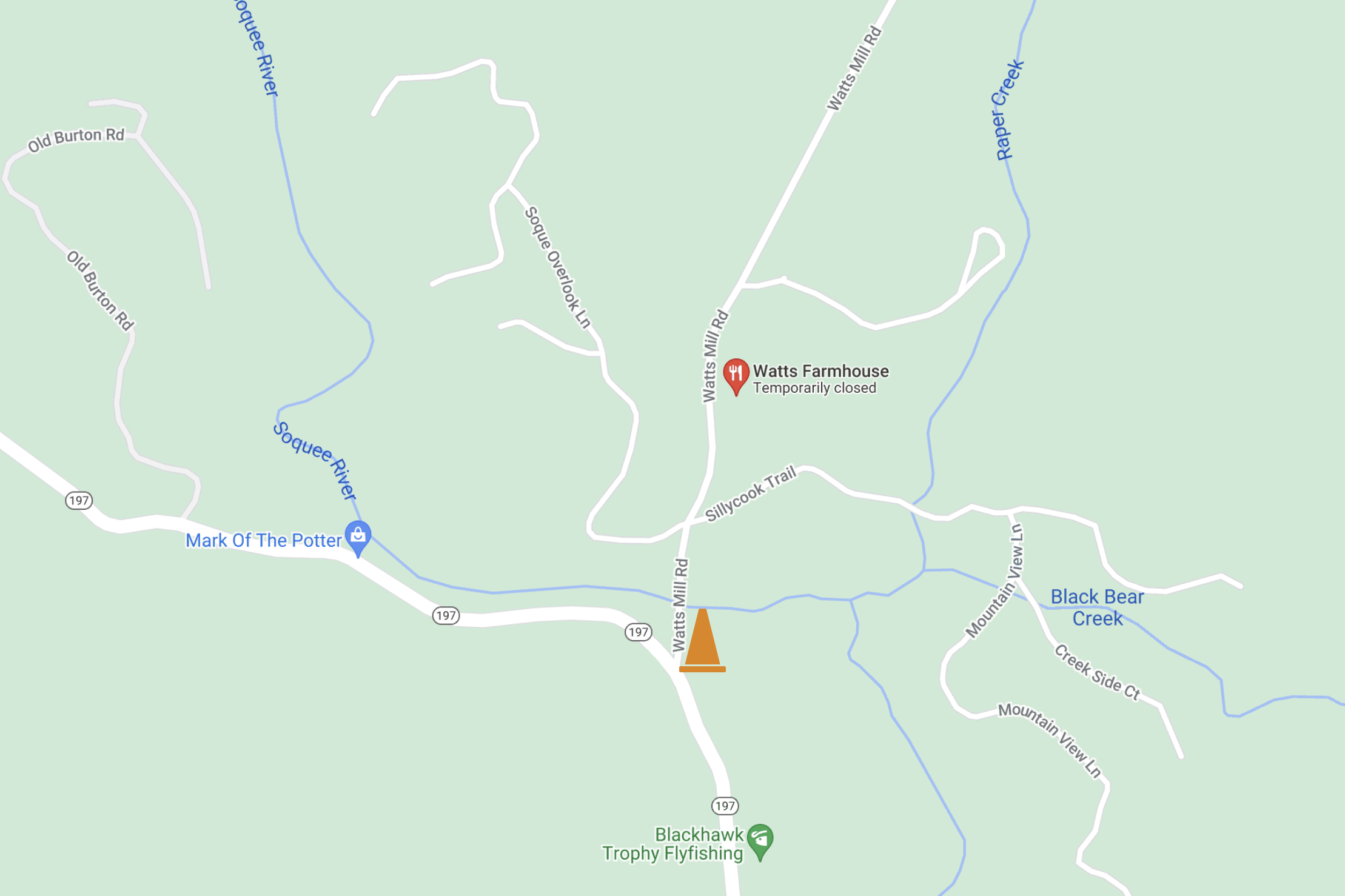 The orange traffic cone marks the area north of Clarkesville where state transportation crews will be working. (Source: Google Maps)