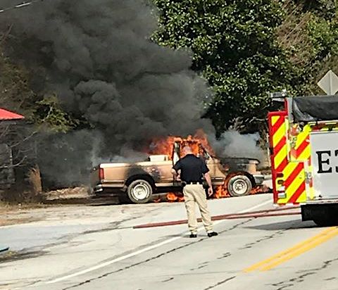 The first incident happened around 1 p.m. when a pickup truck caught fire near North Georgia Technical College on GA 197 North. When firefighters and emergency responders arrived, they found the pickup parked on the side of the road engulfed in flames.