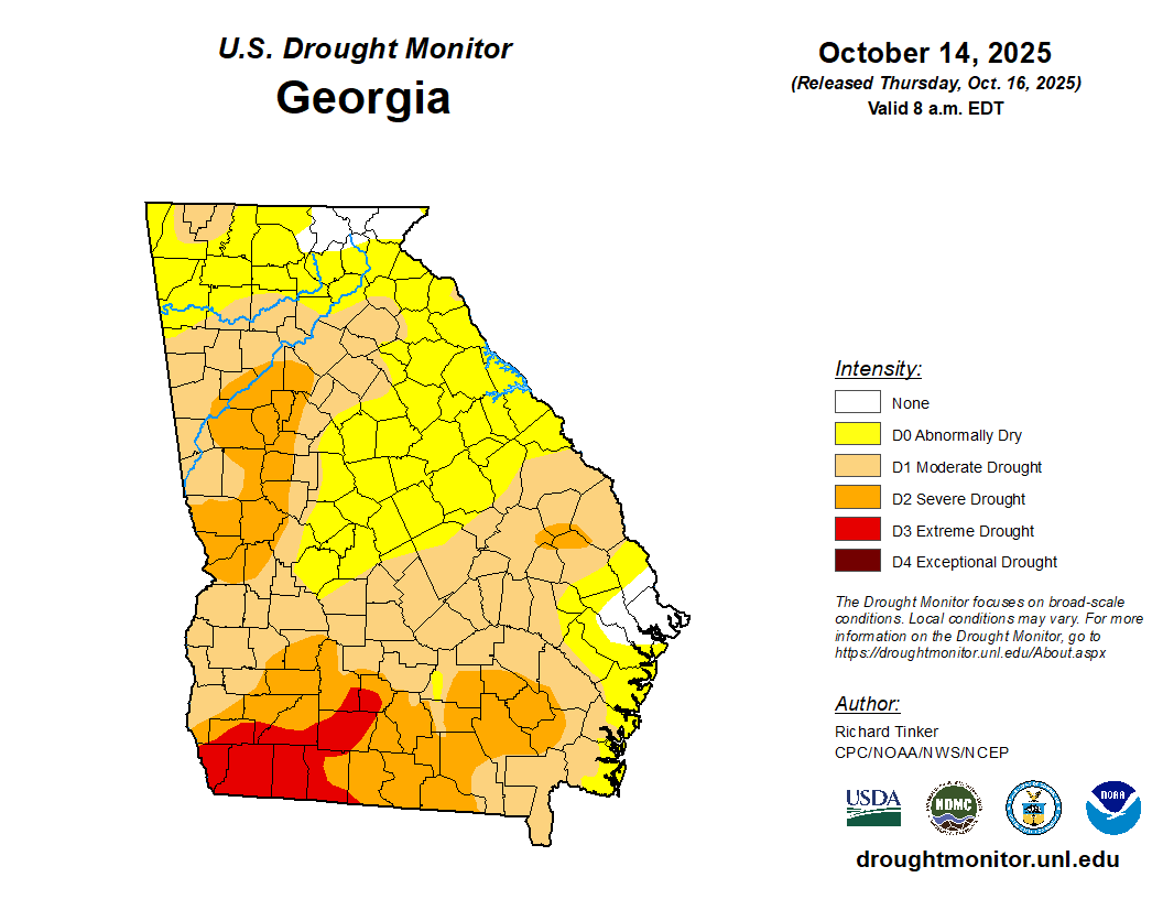 The latest from the US Drought Monitor is out, and the drought continues to gradually worsen across much of the state. We’ve not seen a ton of change across far Northeast Georgia, but just a bit further south the D1 area of moderate drought is quickly expanding in our direction.