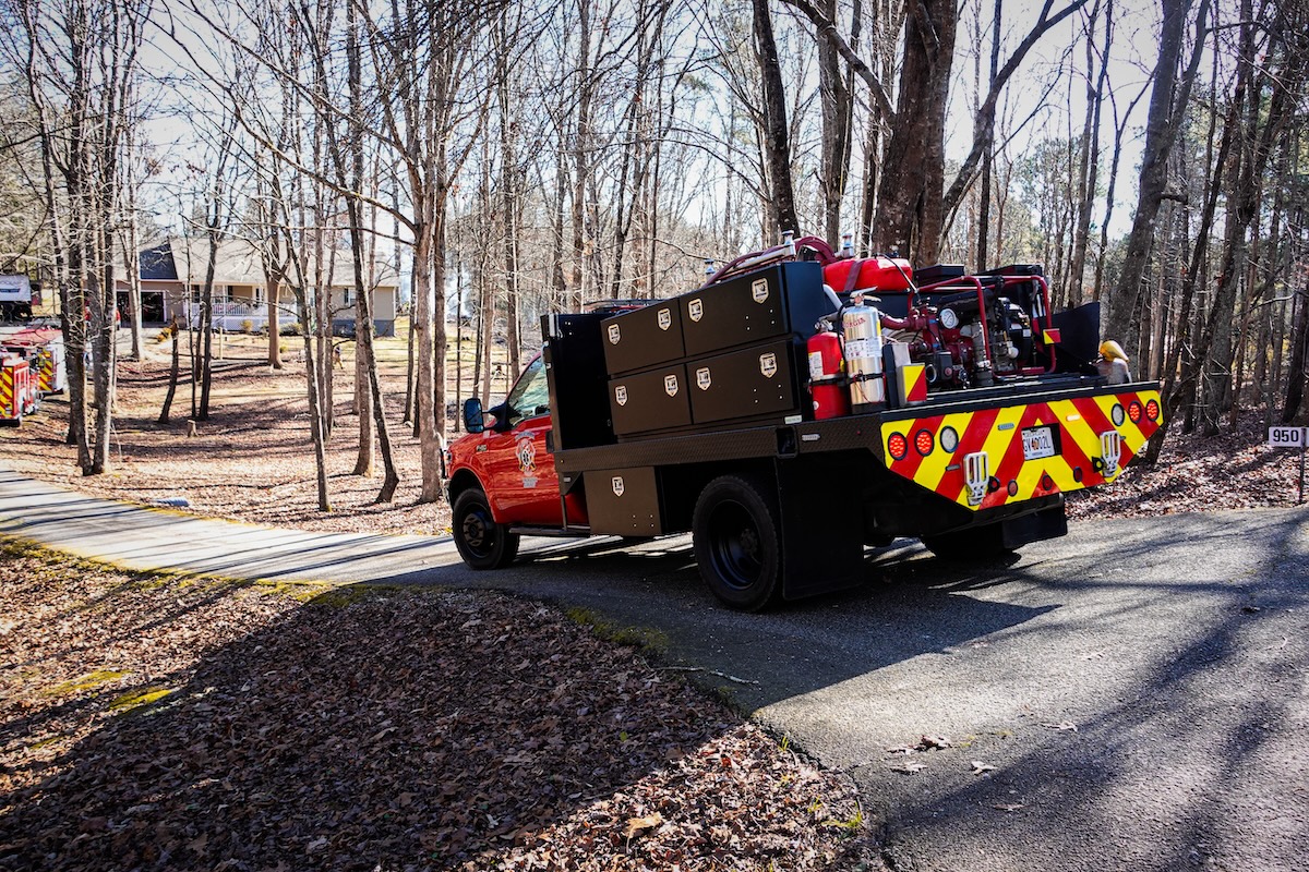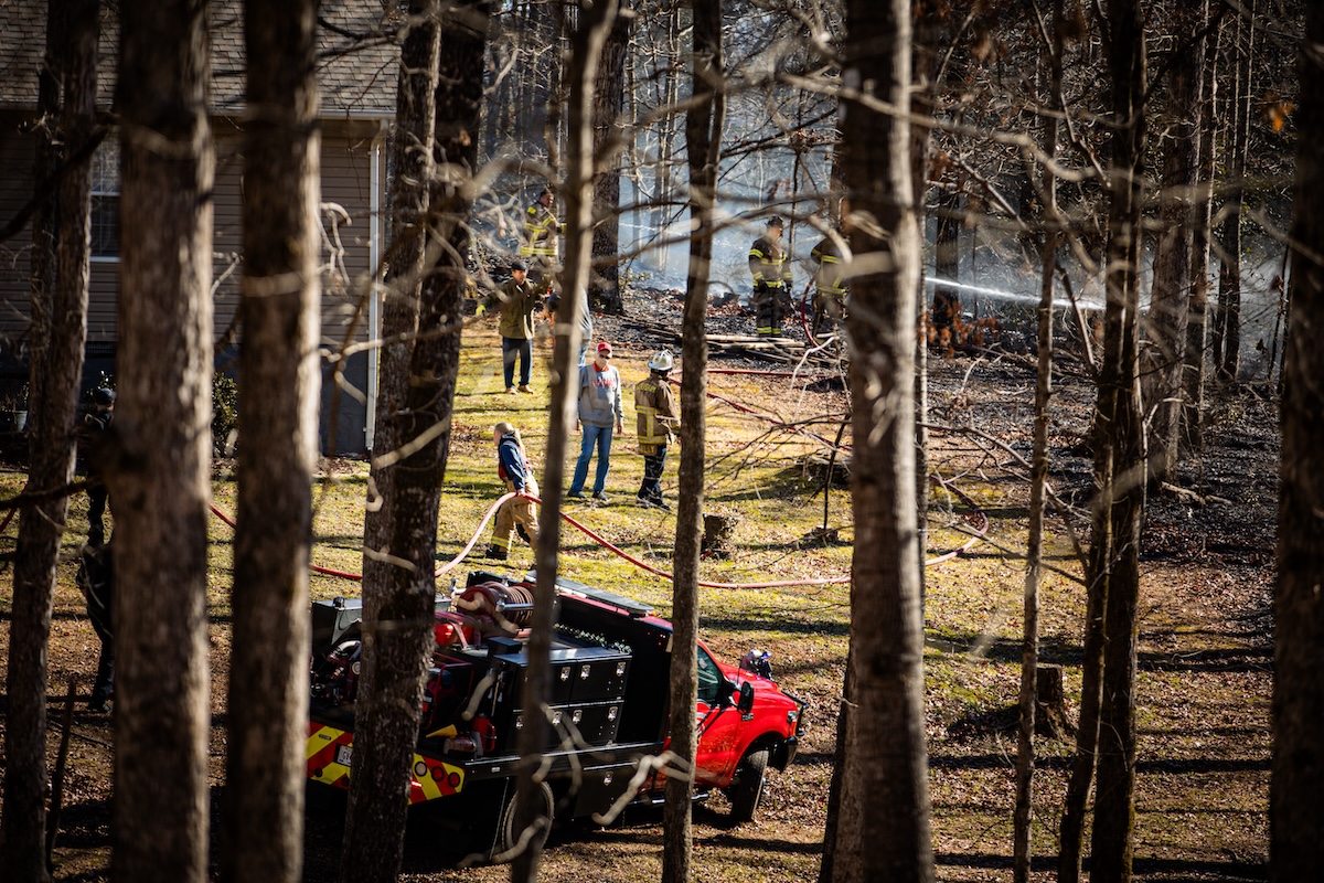 Firefighters extinguish a brush fire in a wooded residential area on Holly Circle in Habersham County on Saturday, Jan. 4, 4, 2025. (Daniel Purcell/NowHabersham.com)