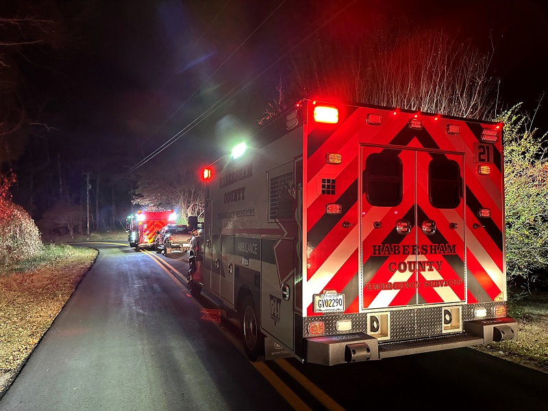 Habersham County Emergency Services and Demorest Fire Department units stage for the search for a missing hunter off Double Springs Road outside Demorest Tuesday night. (Rob Moore/Habersham County)