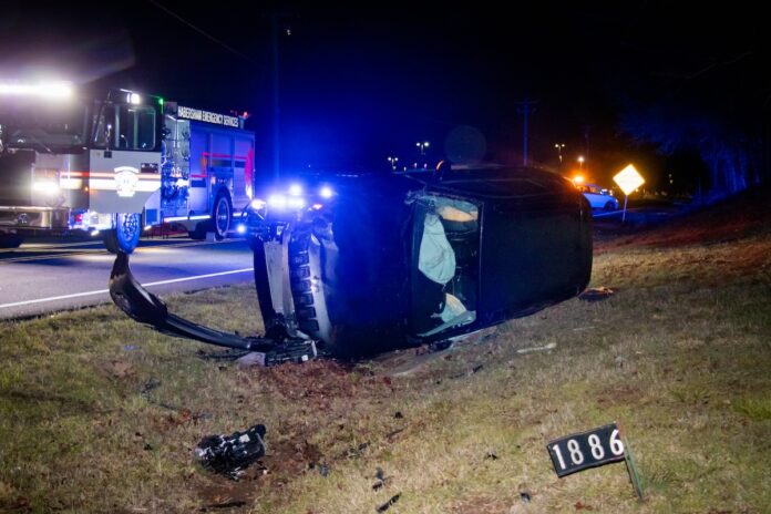 Emergency units responded to this crash in front of Habersham Central High School on GA 197 South in Mt. Airy, Georgia, on March 31, 2025. (Daniel Purcell/NowHabersham.com)