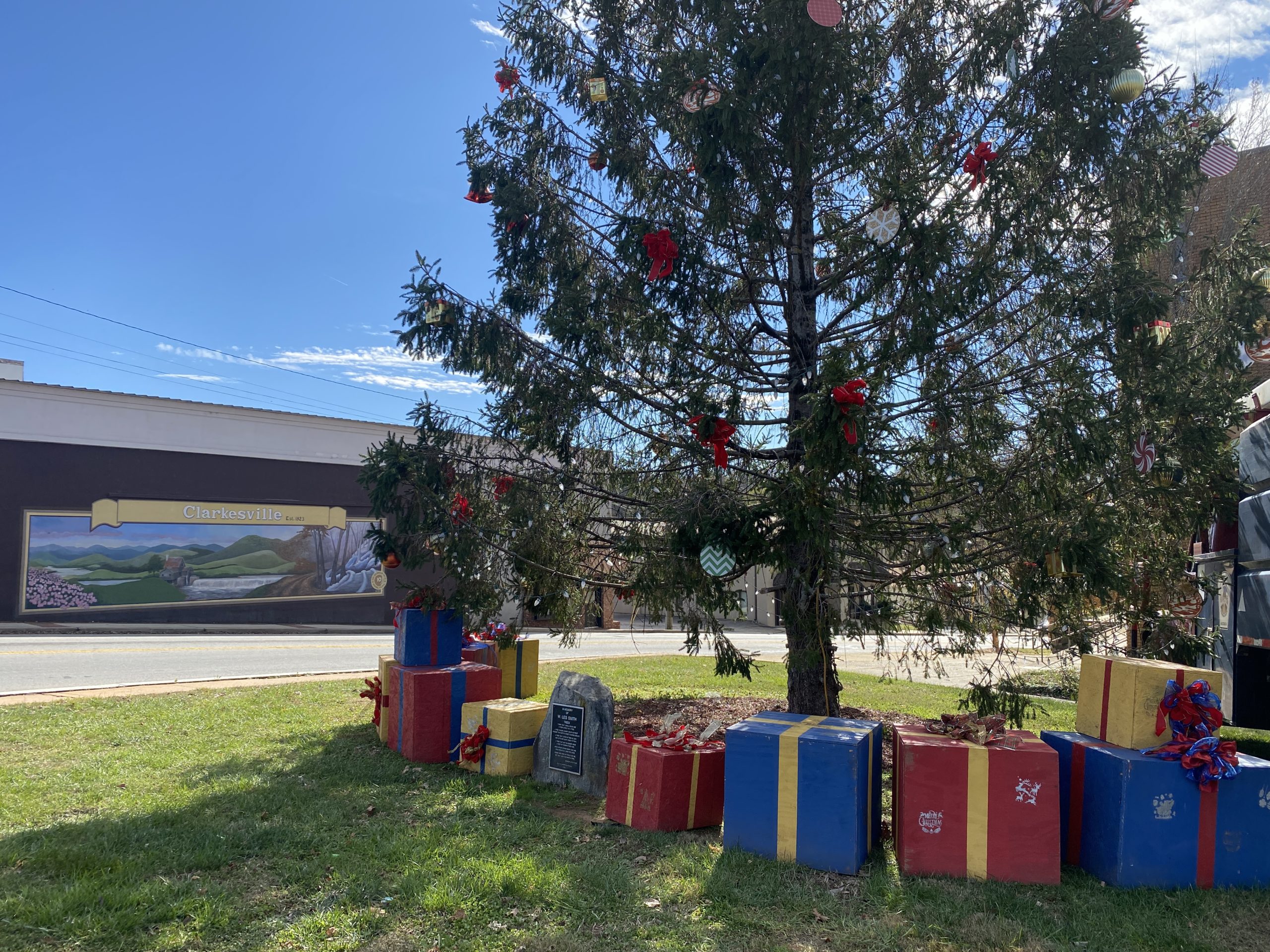 The Christmas decorations are up and the lights will be lit in downtown Clarkesville this evening.