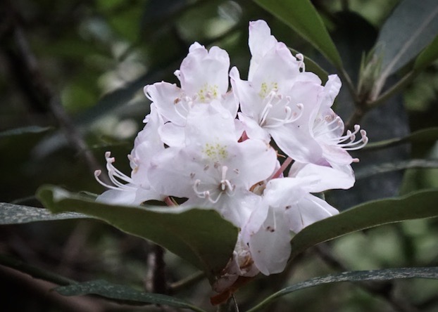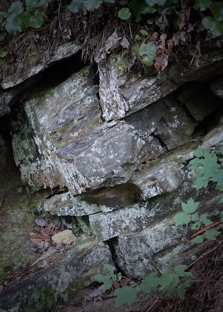 We saw wildflowers, blooming Rhododendron, and luscious ferns by the thousands. We saw wild ginger and Pawpaw trees. We saw rocks covered with thick, verdant green moss. We saw interesting shapes in the tree trunks.