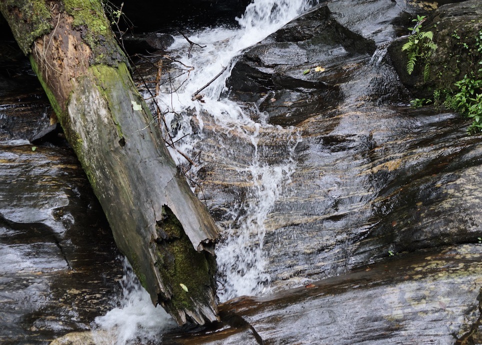 The woods in July are thick and shady. It was pleasant walking as we began, but the humidity rose as we descended. The best views of the falls are somewhat obstructed by the foliage as well, but still awe-inspiring.