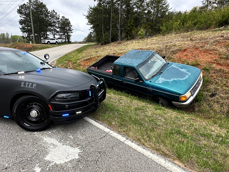 Seeley pursued the pickup down Ansley Road. The fleeing driver narrowly missed being hit by another vehicle when he ran the stop and pulled onto GA 197 South, officials say. Batson continued onto Hazel Creek Road with Seeley and a sheriff’s office traffic unit in pursuit.