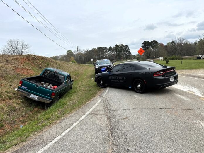 Earlier in the day, the Habersham County Sheriff’s Office issued a lookout for a green 1997 Ford Ranger that had been stolen from a home in Demorest on Easter Sunday. A deputy spotted the stolen pickup on GA 197 South near the Dollar General Store outside of Clarkesville and followed it through town, waiting for other deputies to arrive to assist him.