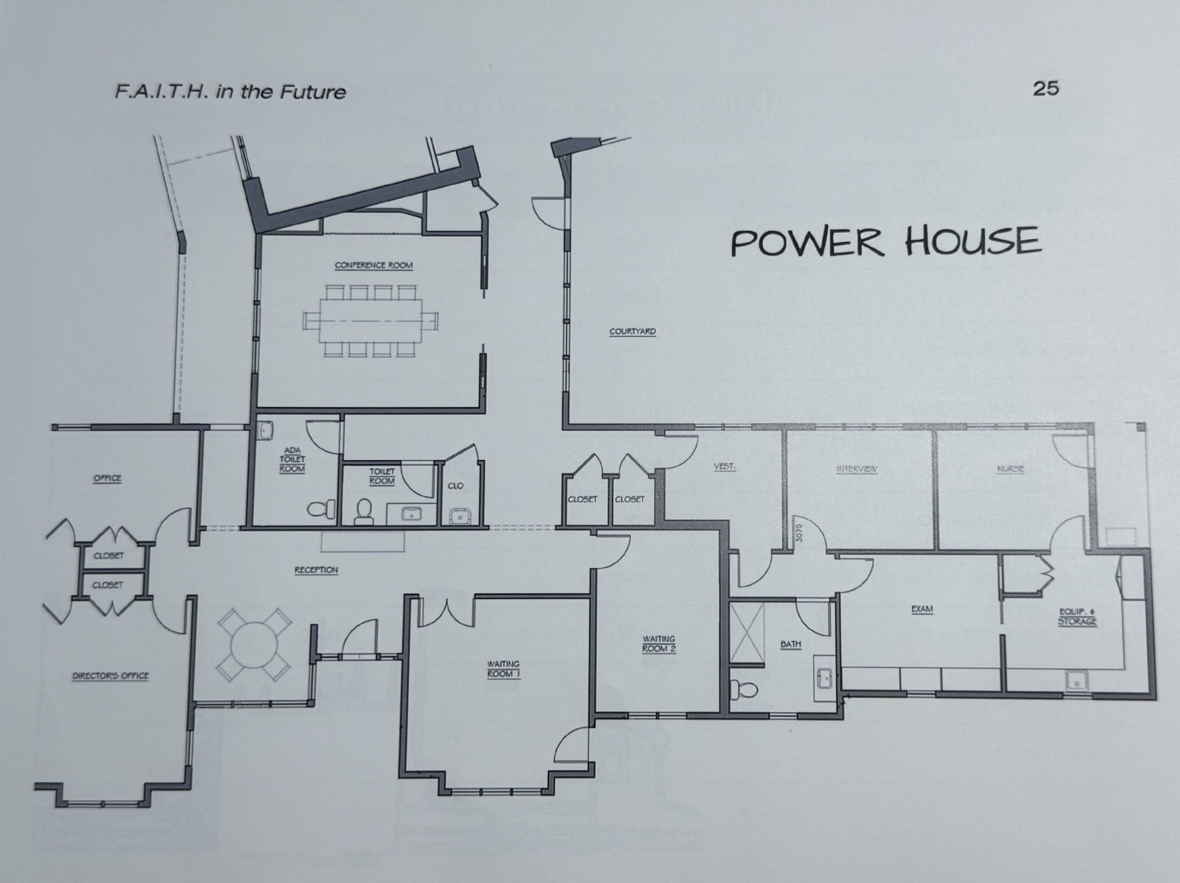 Now Habersham was given a F.A.I.T.H fundraising packet explaining the mockup of the Mt. Airy Power House. The new center will accommodate both the increase in clients and the severity of each case, while also providing privacy between overlapping cases.