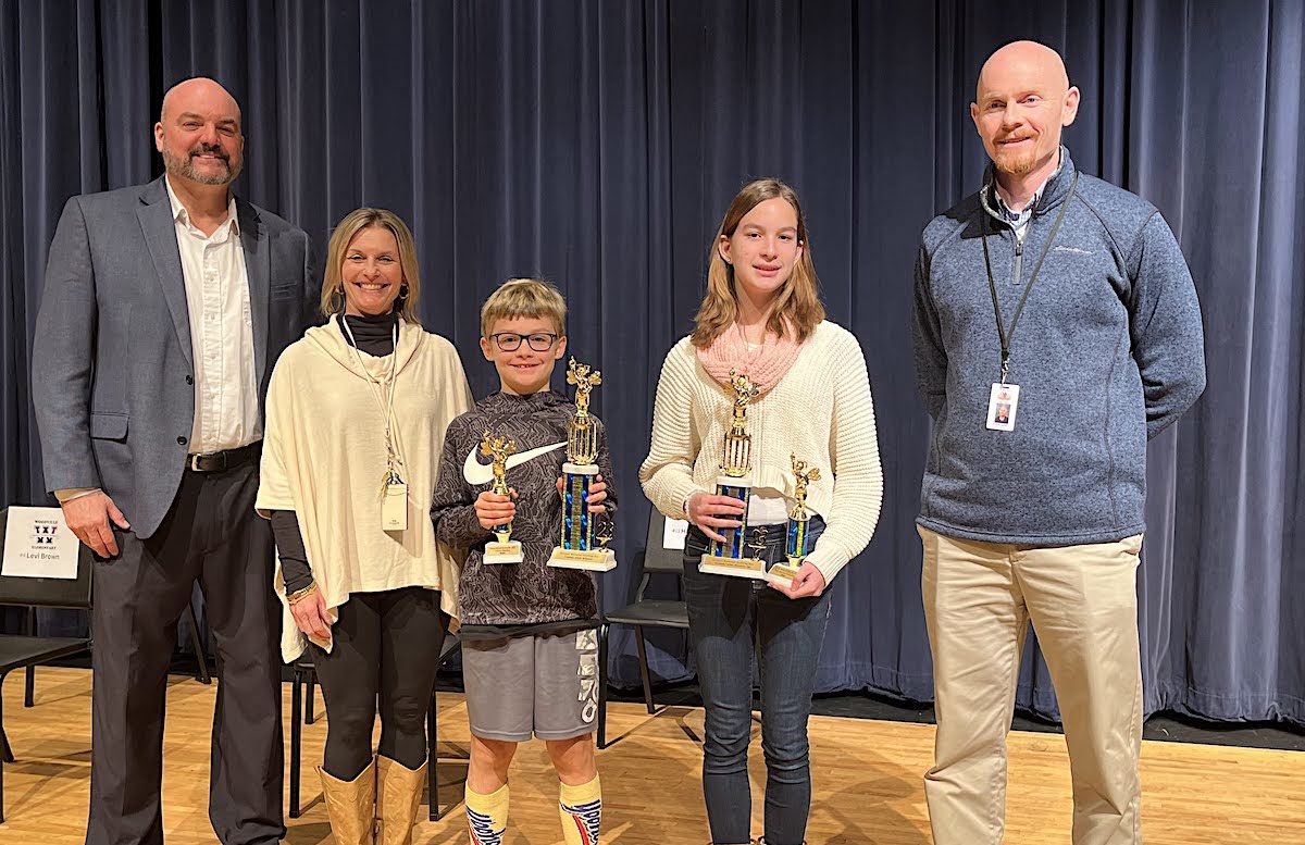 Pictured: Superintendent Matthew Cooper, Fairview Principal Michelle Wilbanks, Champion Patrick Schupp, Runnerup Julia Betzios, North Habersham Principal Dr. Adam Bagwell.