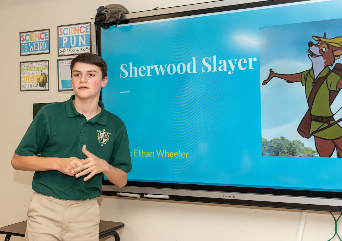 Spinning tales such as “Sherwood Slayer,” drawn from the story of Robin Hood, the students presented their fairy tale forensics scenarios. They polished their public speaking skills by acting as a lawyer arguing a case in front of a jury of their peers.
