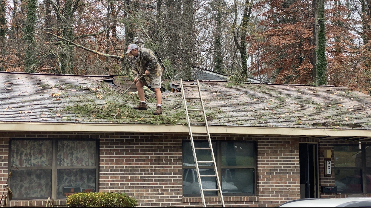 Three families had to temporarily evacuate their apartments in the complex after a tree fell on top of one of the units and caused a gas leak. The tree seriously damaged one apartment, forcing the occupant from her home until repairs are made. The Red Cross is offering temporary housing assistance and the Northeast Georgia Housing Authority is overseeing repairs.