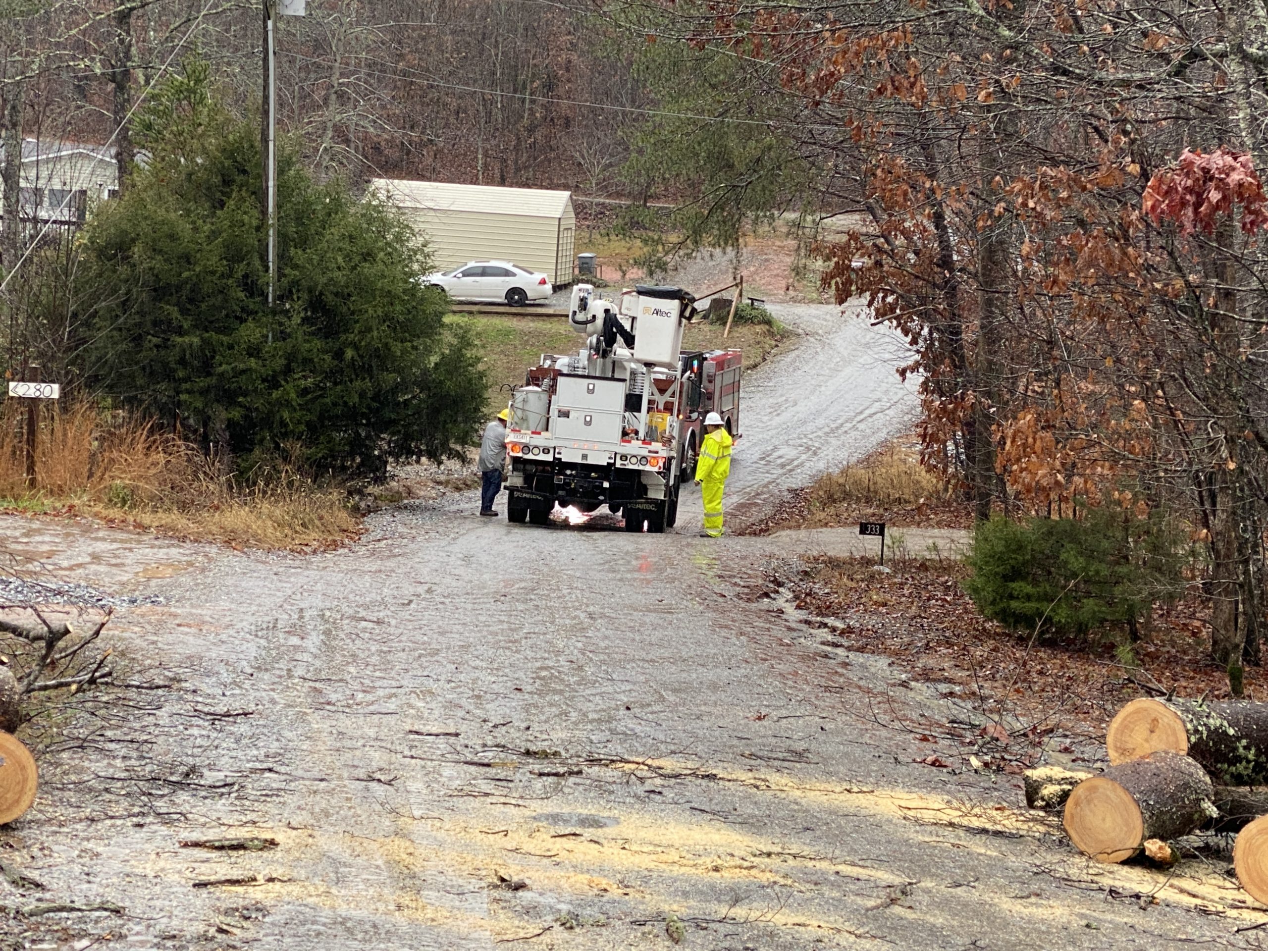 The same storm system that hit the housing complex toppled a large tree north of Clarkesville, blocking Stonebank Road and cutting off HEMC power to the area. There are reports of downed trees on New Liberty Road, as well.