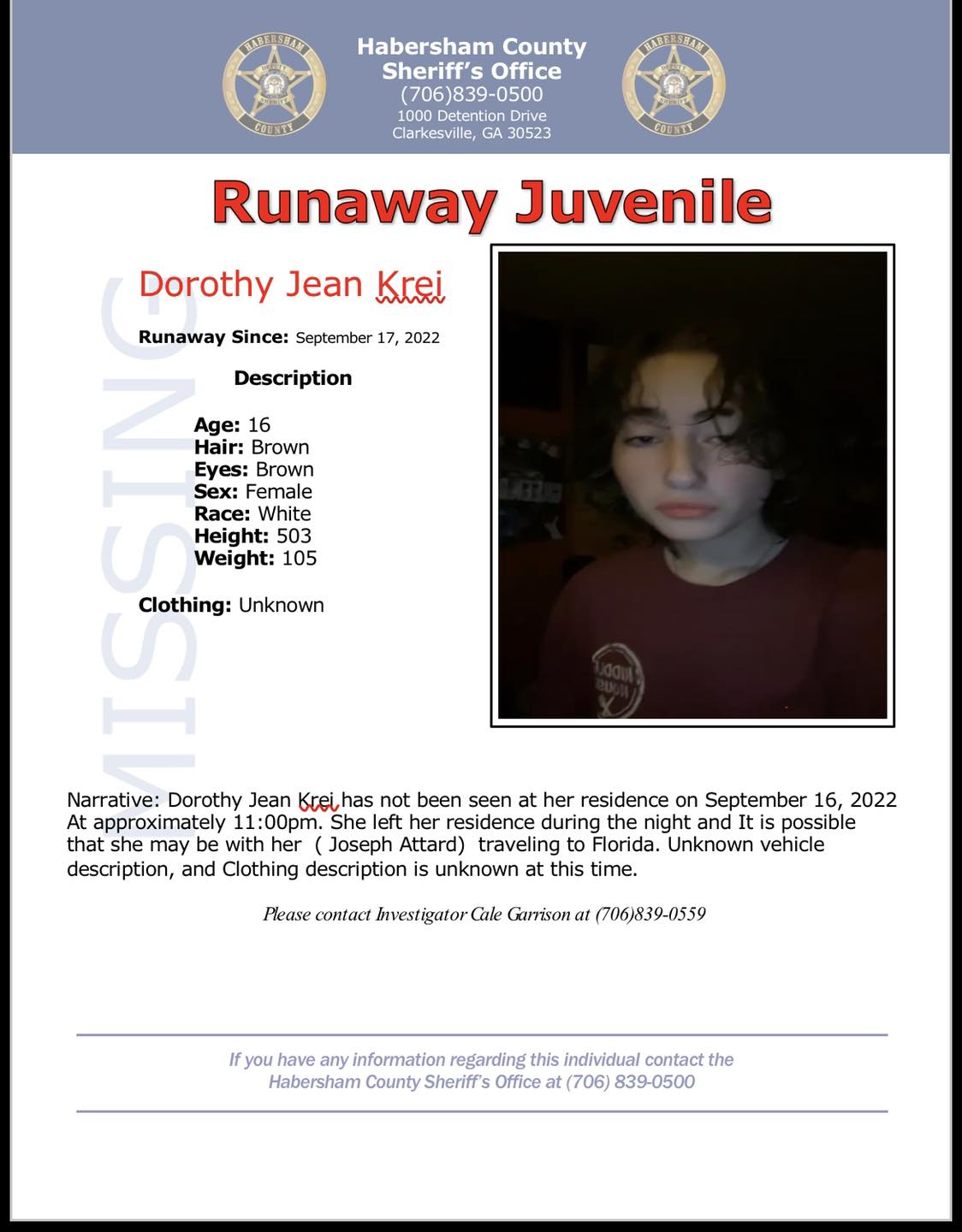 Attard and Krei are both eleventh graders at Habersham Central High School. When their parents reported them missing, there was reason to believe the pair might be hitchhiking to Florida. Since then, some of the teens’ friends have said they may be heading to Asheville, North Carolina, or Pigeon Forge, Tennessee, with possible plans to go to California from there.