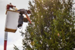 Clarkesville Public Works employee Michael Yearwood strings lights on the city's Christmas tree. A record number of lights will shine in Clarkesville during the...