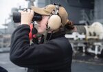 Seaman Charlsie Maddox, from Helen, stands watch on the fantail of the aircraft carrier USS Nimitz (CVN 68). (U.S. Navy photo by Mass Communication Specialist...