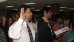 Guy Ramos takes the oath of allegiance to the United States of America during his naturalization ceremony. He says veterans paved the way for...
