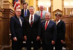 Pastor Mike Franklin (front row, 2nd from left) is pictured on the Senate floor with Lt. Governor Casey Cagle, Senator John Wilkinson, along with...
