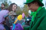 Dressed convincingly as a leprechaun, Piedmont's Campus Activities Board president Gabriel Gutierrez greets 5-month old Kaiden Crawford -- aka "Uncle Si" -- during the...