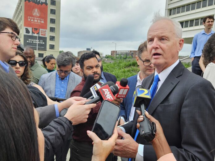 Attorney Charles Kuck speaks with reporters following a hearing on students’ immigration status being revoked. (Ross Williams/Georgia Recorder)