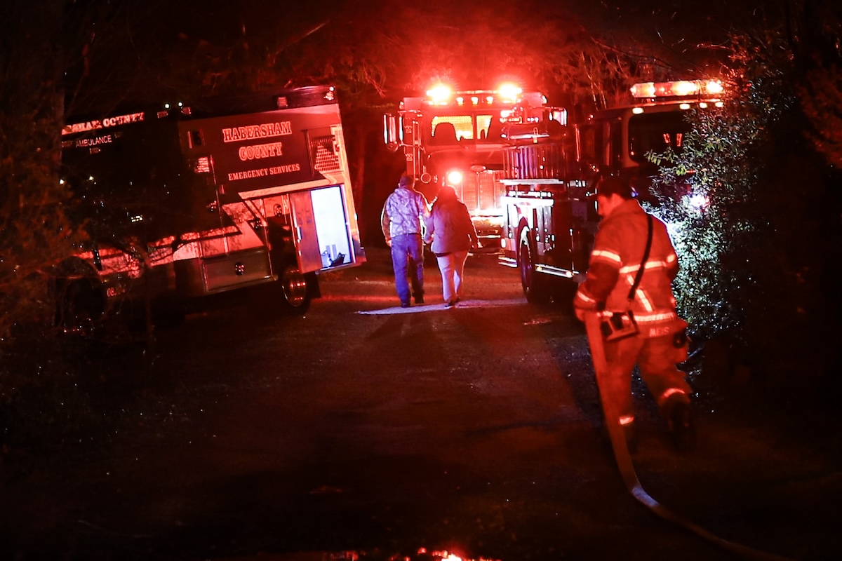 The residents walk away from the home after surveying the damage inside. (Daniel Purcell/NowHabersham.com)Habersham County firefighters clean up after extinguishing the fire. They were on scene for several hours. (Daniel Purcell/NowHabersham.com)