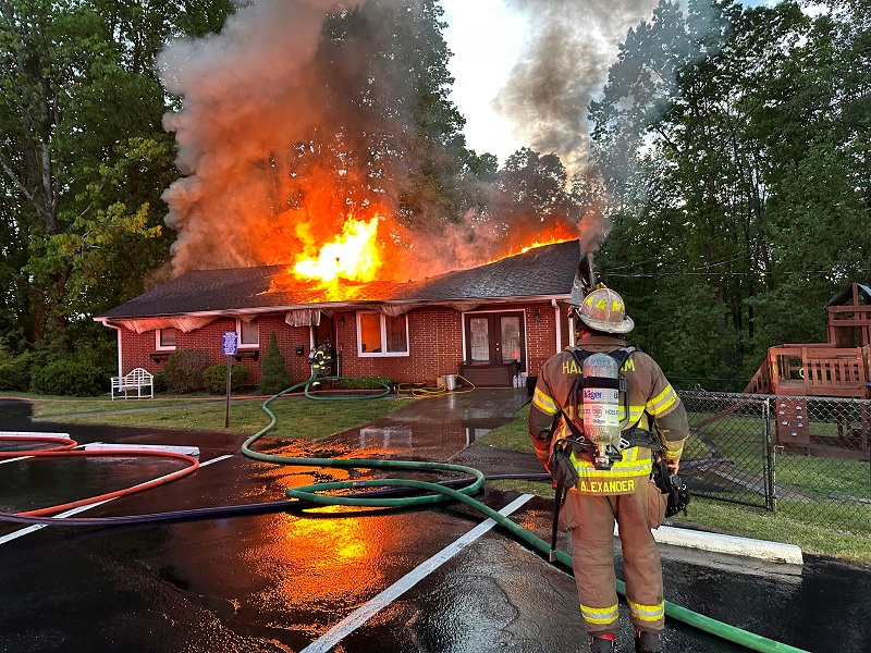 Habersham County E-9-1-1 received a call at 6:17 a.m. reporting a fire on the back porch area of the 2,000-square-foot brick home on a full basement.