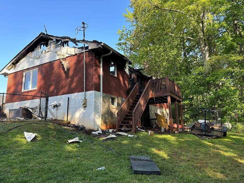 The home suffered heavy damage, but the family was able to salvage some items after the fire was extinguished.