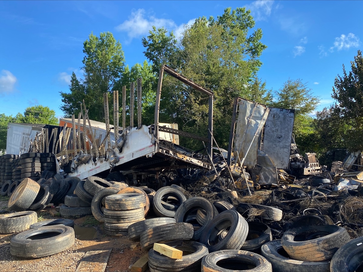 The fire gutted two tractor-trailers and burned hundreds of tires. The cause of the fire is under investigation. (Photo by Hall County Fire Rescue)